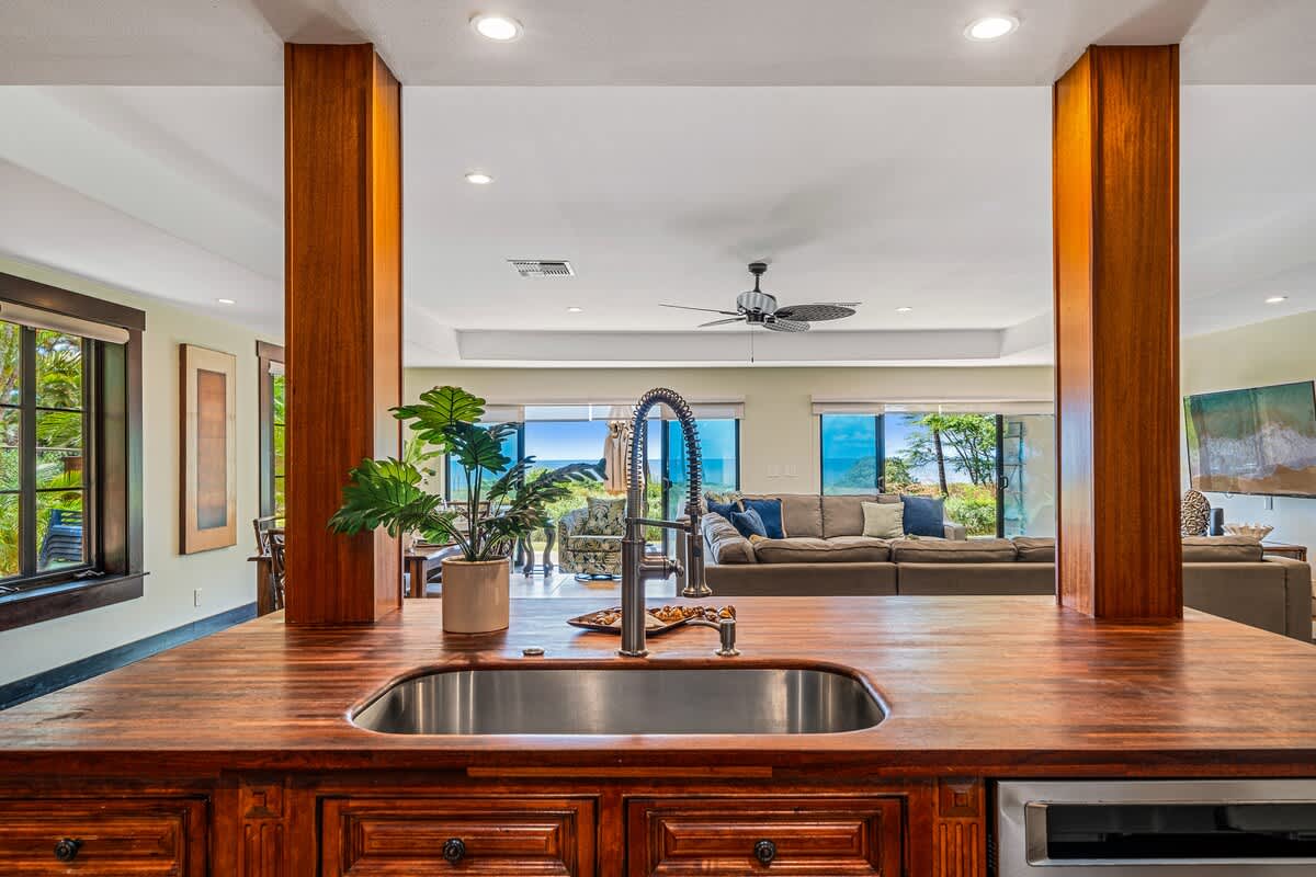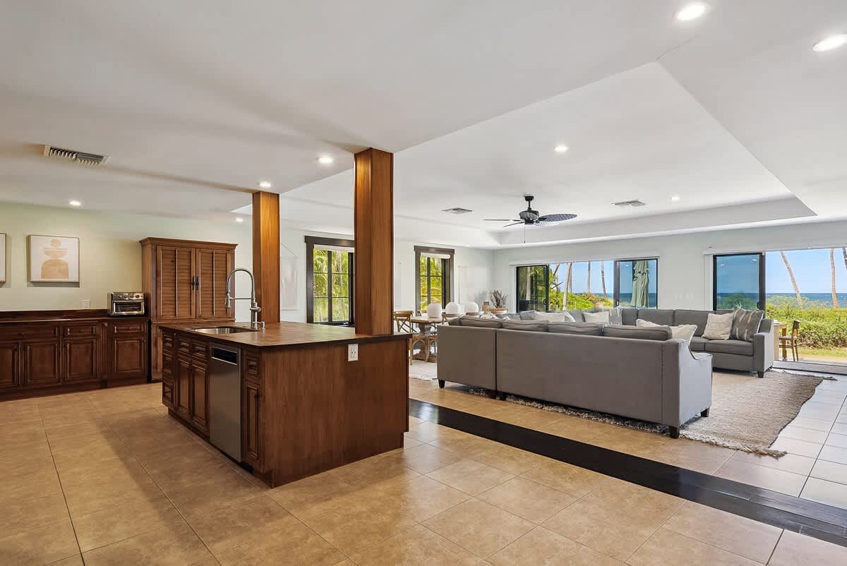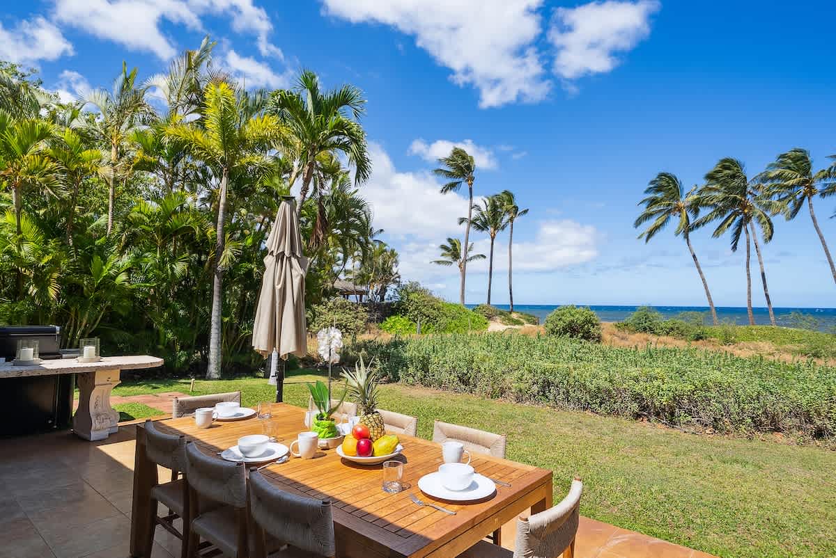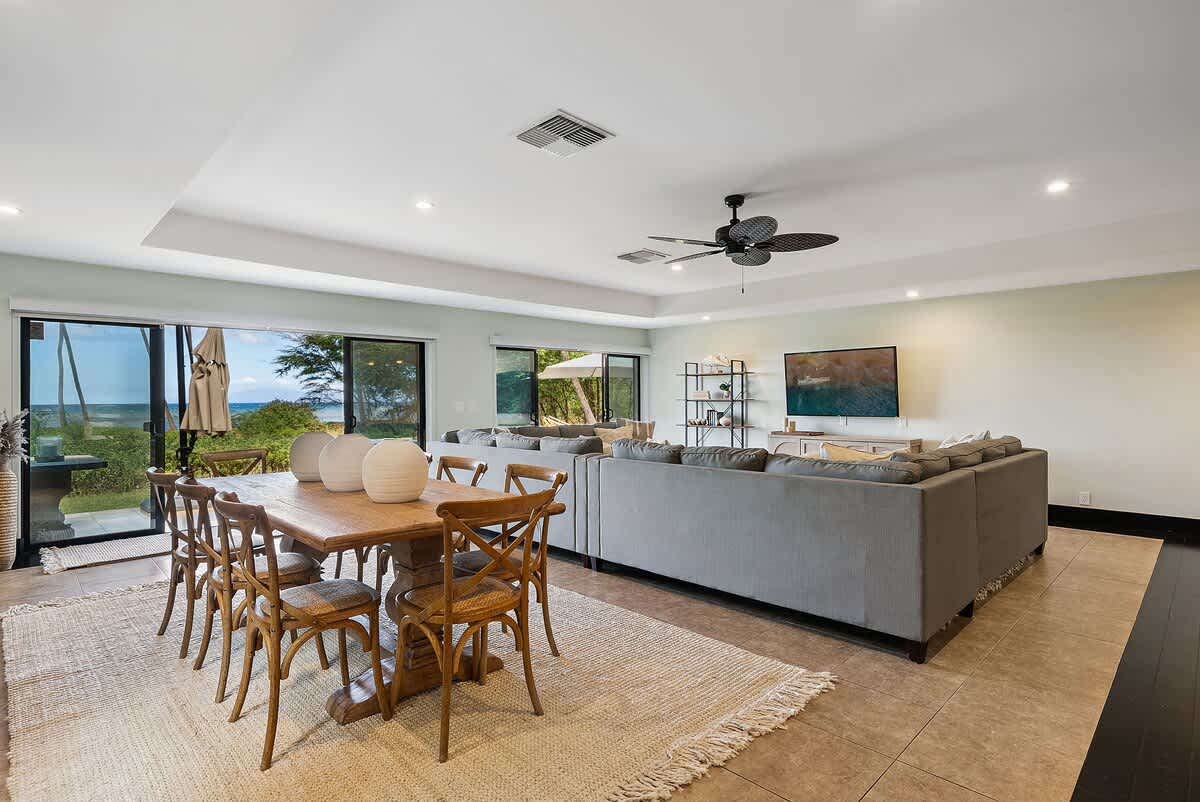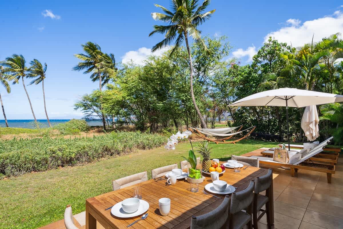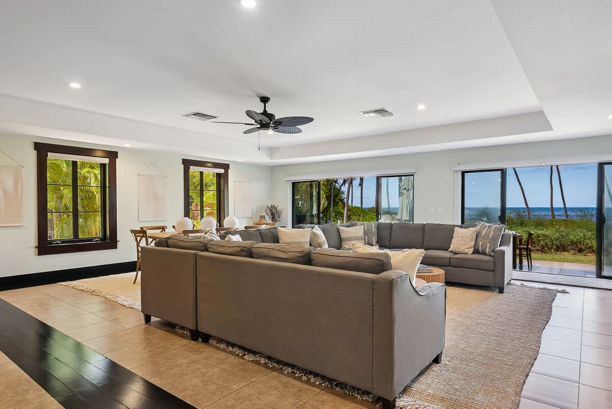 Create unforgettable memories with your loved ones at this spacious, single-level oceanfront retreat, perfectly situated on the quiet and highly sought-after “Secret Beach” stretch of Halama Street in Kihei. With direct beach access, lush tropical grounds, and generous indoor-outdoor living spaces, this private home is designed for exceptional family vacations and group getaways in Maui.